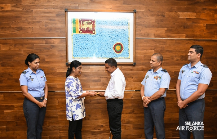 In line with the novel concept introduced by the Commander of the Air Force, Air Marshal Bandu Edirisinghe, and the Chairperson of the SLAF Seva Vanitha Unit, Mrs. Krishanthi Edirisinghe, financial assistance amounting to Rs. 1 million was awarded to five SLAF civil personnel who are experiencing severe financial and family difficulties, particularly in relation to health, housing and children’s educational needs.