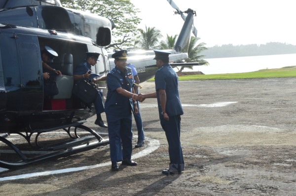 ශ්රී ලංකා ගුවන් හමුදාව කොග්ගල කඳවුරේදී එහි අණදෙන නිලධාරී විංග් කමාන්ඩර් ෂෙහාන් විිජයනායක විසින් ගුවන් හමුදාධිපතිතුමා පිළිගනු ලැබූ අතර එහිදී මගදෙපස කන්ඩයක් මගින් ගුවන් හමුදාධිපති තුමන් හට උත්තමාචාර පුද කරනු ලැබීය.