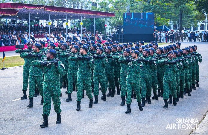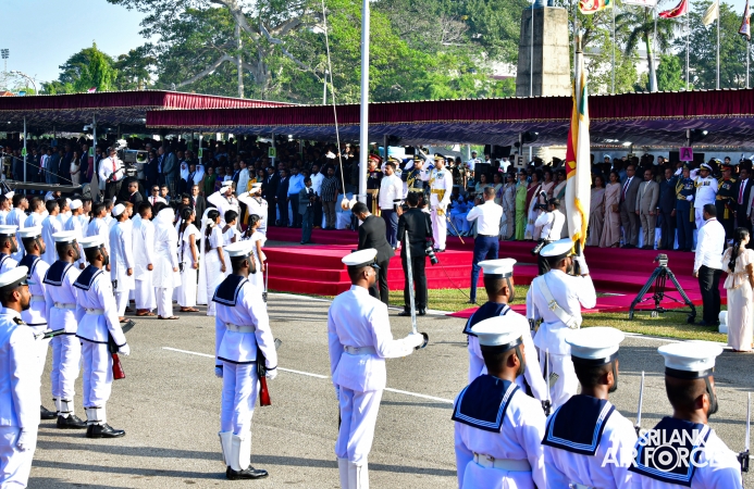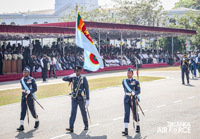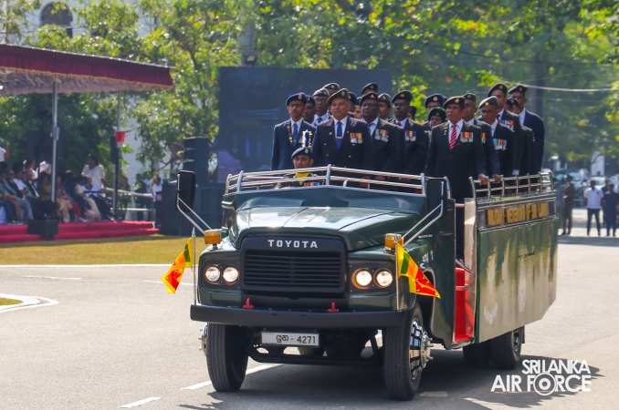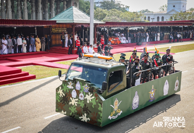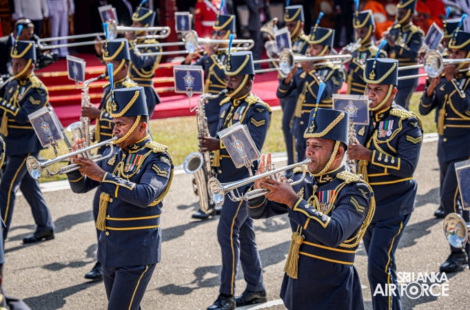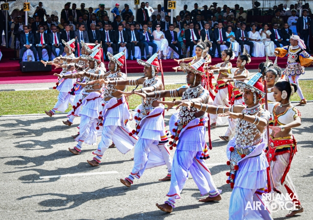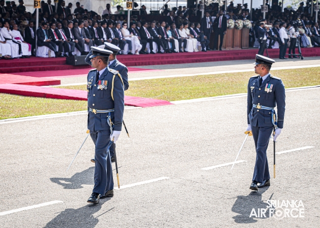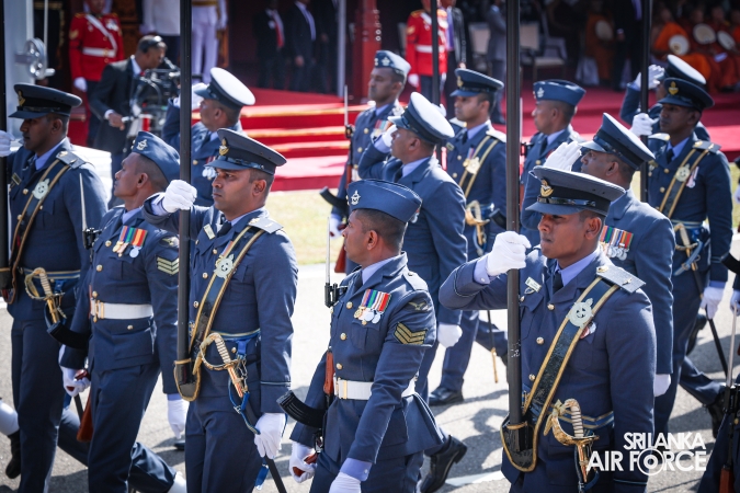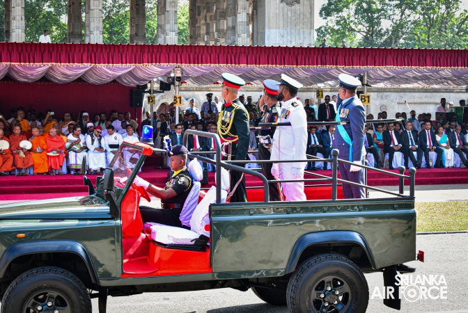 ස්කොඩ්රන් ලීඩර් හරිත පින්නදූවගේ නායකත්වයෙන් යුත් විශේෂ ගුවන් බලඝණය ජනාධිපතිතුමාට සිය ආචාරය පුද කළ අතර පසුව වින්ග් කමාන්ඩර් රොමේෂ් බස්තියන්ගේ නායකත්වයෙන් යුත් රෙජිමේන්තු විශේෂ බලකා බලඝණය ගමන් කරන ලදී.