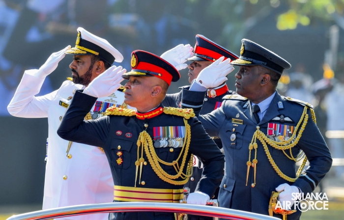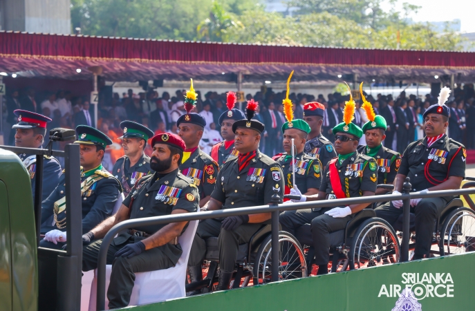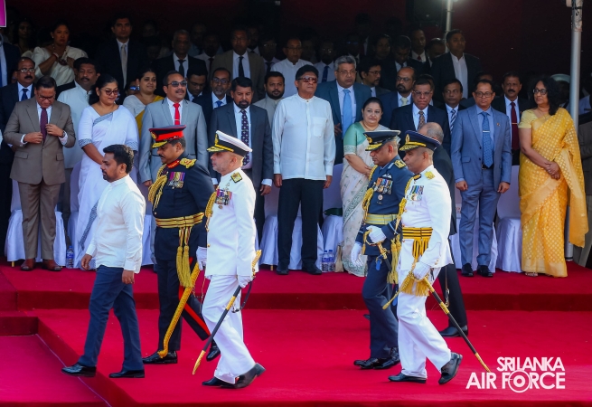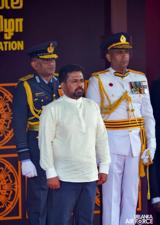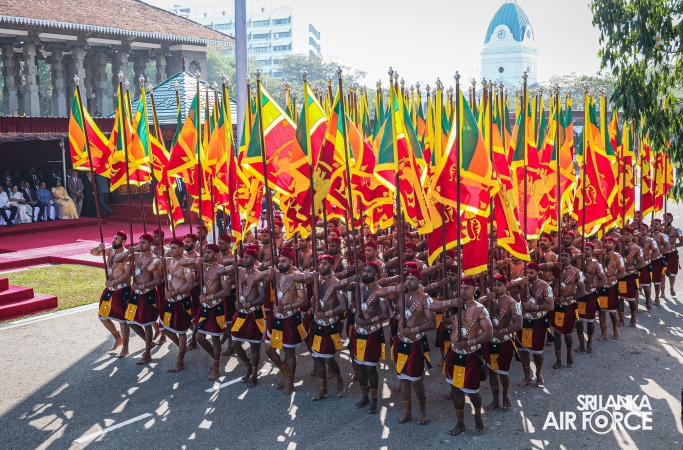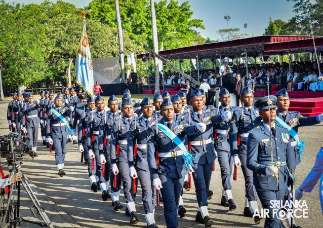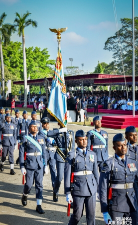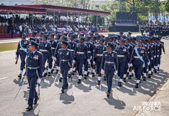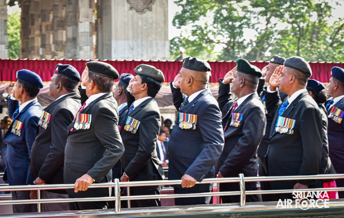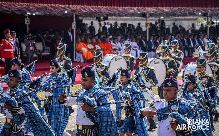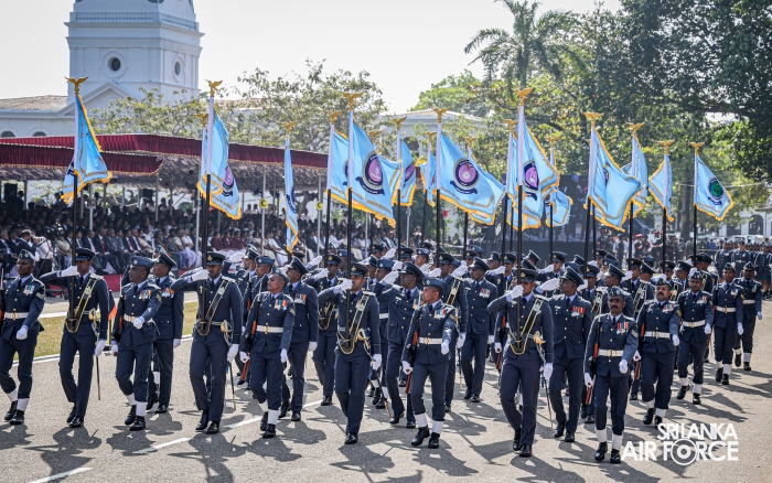 ස්කොඩ්රන් ලීඩර් හරිත පින්නදූවගේ නායකත්වයෙන් යුත් විශේෂ ගුවන් බලඝණය ජනාධිපතිතුමාට සිය ආචාරය පුද කළ අතර පසුව වින්ග් කමාන්ඩර් රොමේෂ් බස්තියන්ගේ නායකත්වයෙන් යුත් රෙජිමේන්තු විශේෂ බලකා බලඝණය ගමන් කරන ලදී.