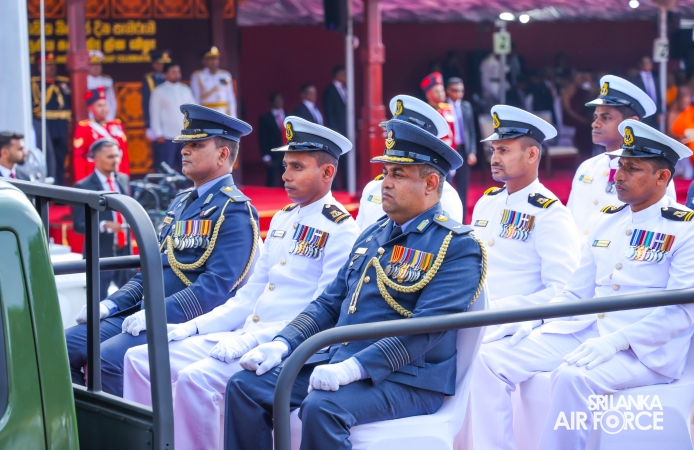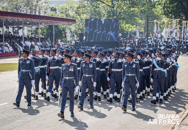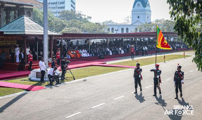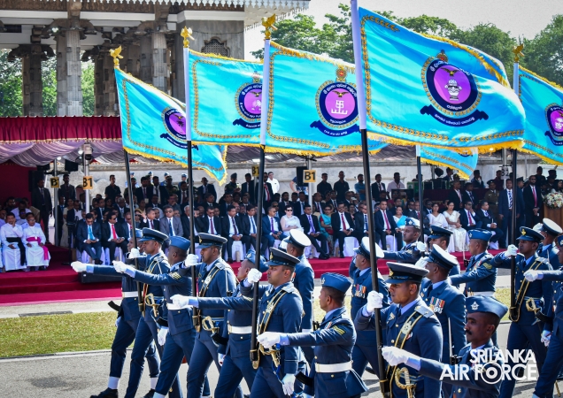 ගුවන් හමුදාපති එයාර් මාර්ෂල් බන්දු එදිරිසිංහ මහතාගේ දක්ෂ නායකත්වය යටතේ අහසේ ආරක්ෂකයින් මෙම වසරේ නිදහස් උත්සවයට ආඩම්බරයෙන් හා අභිමානයෙන් සහභාගී විය. ගුවන් හමුදා හෙලිකොප්ටර් යානා තුනක්, නිලධාරීන් 62 ක්, ගුවන් භටයින් සහ ගුවන් කාන්තාවන් 521 ක් චාරිත්රානුකූල පා සරඹ සදහා සහභාගී විය.
